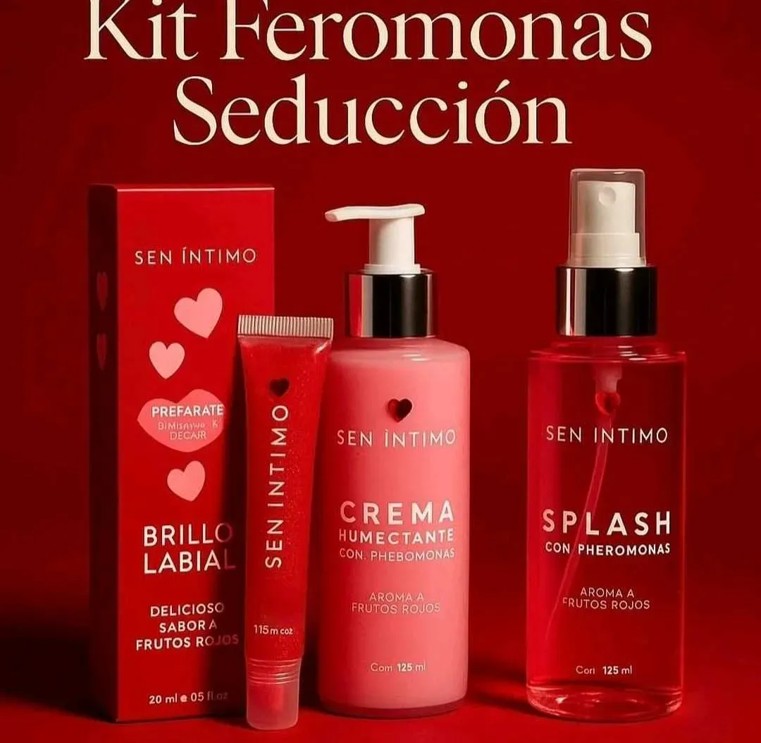 Toda la linea de feromonas es increíble la cremita de manos te deja la piel humectada con brillitos y huele delicioso, el splas te refresca y deja un aroma de frutos rojos , Y el brillo Labial tiene un acabado brilloso que llama la atención y su sabor a frutos rojos es más irresistible te encantara